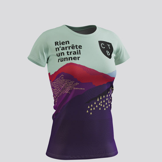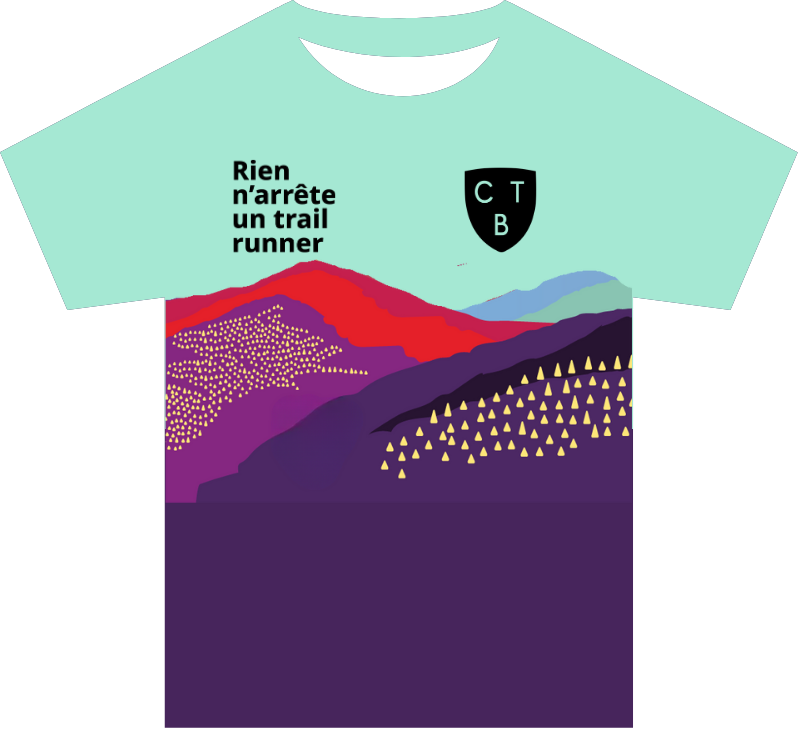 Achète ton Chandail unisexe à manches courtes multicolore Rien n'arrête un Trailrunner fabriqué au Québec par la compagnie Apogée. Un design unique bromontois, fait par Marc Serre de Kuizin Studio.
